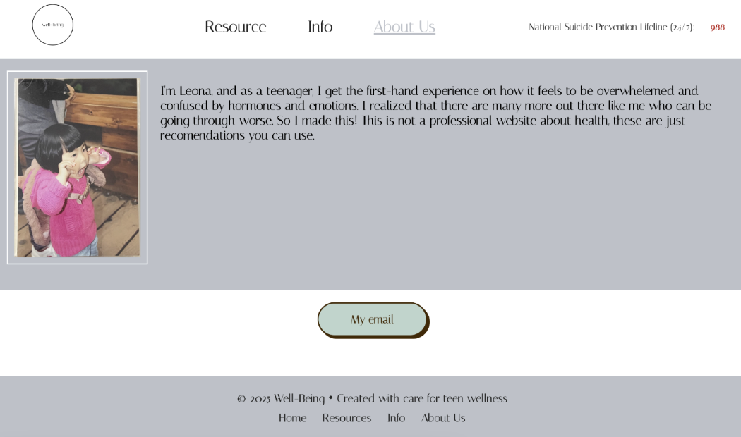 This project is about mental health for teenagers. It is by no means professional, and we are clear about that. It provides resources with medical support, and information about when it’s time to reach out.